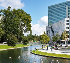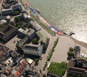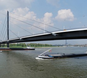 Linksrheinisch gibt’s natürlich auch HoHo Zielpunkte: das EKO Haus „H„ – bekannter als „Japanischer Tempel“ und sicher einen Sonderbesuch wert, sonst zumindest ein Schnelleinblick in Japanisch-Rheinische Lebenskultur. Es gib auch Architektonische Gegengewichte, wie Alt Niederkassel mit winzigen Bauernhäuschen oder mondäne Villen entlang des Rheinufer – teils macht der „Kaiser-Ring“ seinem Ursprung alle Ehre. Die „Reurbanisierung“ Düsseldorfs sieht man auf Wunsch ebenso exemplarisch am neuen Vodafon Campus oder dem Belsen- & Heine-Park. Von hier bzw. dem mächtigen Hotelzentrum am Seestern bietet sich die Rückkehr in die Stadt über eine der grossen Schrägseil-Rheinbrücken an – die locken nicht zum Sightseeing Stop, dafür mit unvergleichlichen Panorama Blicken auf die Stadt. Da können ruhig auch 3-4 (!) Rheinquerungen in die Tour integriert werden – jedesmal garantiert mit völlig neuen, unvergesslichen Perspektiven …