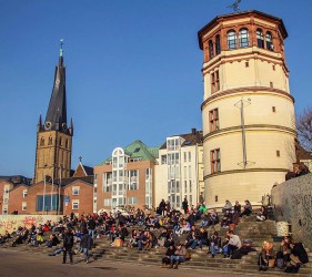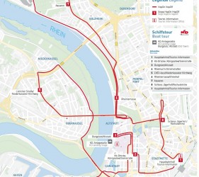 HopOn-HopOff Touren tragen es schon im Namen, allerdings „nur“ für 7 „H“alte-Punkte – jedoch „Hot Spots“ mit Merkwert für den Düsseldorf Besuch: Idealer Start auf der Mitte der Königsallee, der Altstadt oder dem Medienhafen, nach erster Rheinüberfahrt der Japanische Tempel in Oberkassel und nach erneuter Rheinquerung die Rheinterrassen. Im Norden dann der Aquazoo und nach Rückfahrt am Rhein und quer durch den Hofgarten Stop am Schloss Jägerhof. Schliesslich zurück zum Hbf, dem Ausgangspunkt der HoHo-Route (verzichtbar !). Details finden Sie nach den Bildern …