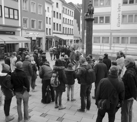 Heute, am 10.1. habe ich über 25 Fotografen, die Düsseldorf in all seinen Facetten kennen und 365 Tage im Jahr fantastische Fotos dieser Stadt machen, für 2 Stunden durch die Altstadt führen dürfen. Viel Freude, Interesse, tolle Fotos aus „allen Lagen“ und ein sehr sympathischer Austausch miteinander waren der Lohn! „BILD-KREATIVITÄT“ kombinierte sich da ganz spontan mit meinem besonderen Bezug zu den Kirchen, der Stadt und deren vielen, wunderbaren Details. Am 16.1. wird sich diese Symbiose hoffentlich wiederholen – mit einer 2. Gruppe.